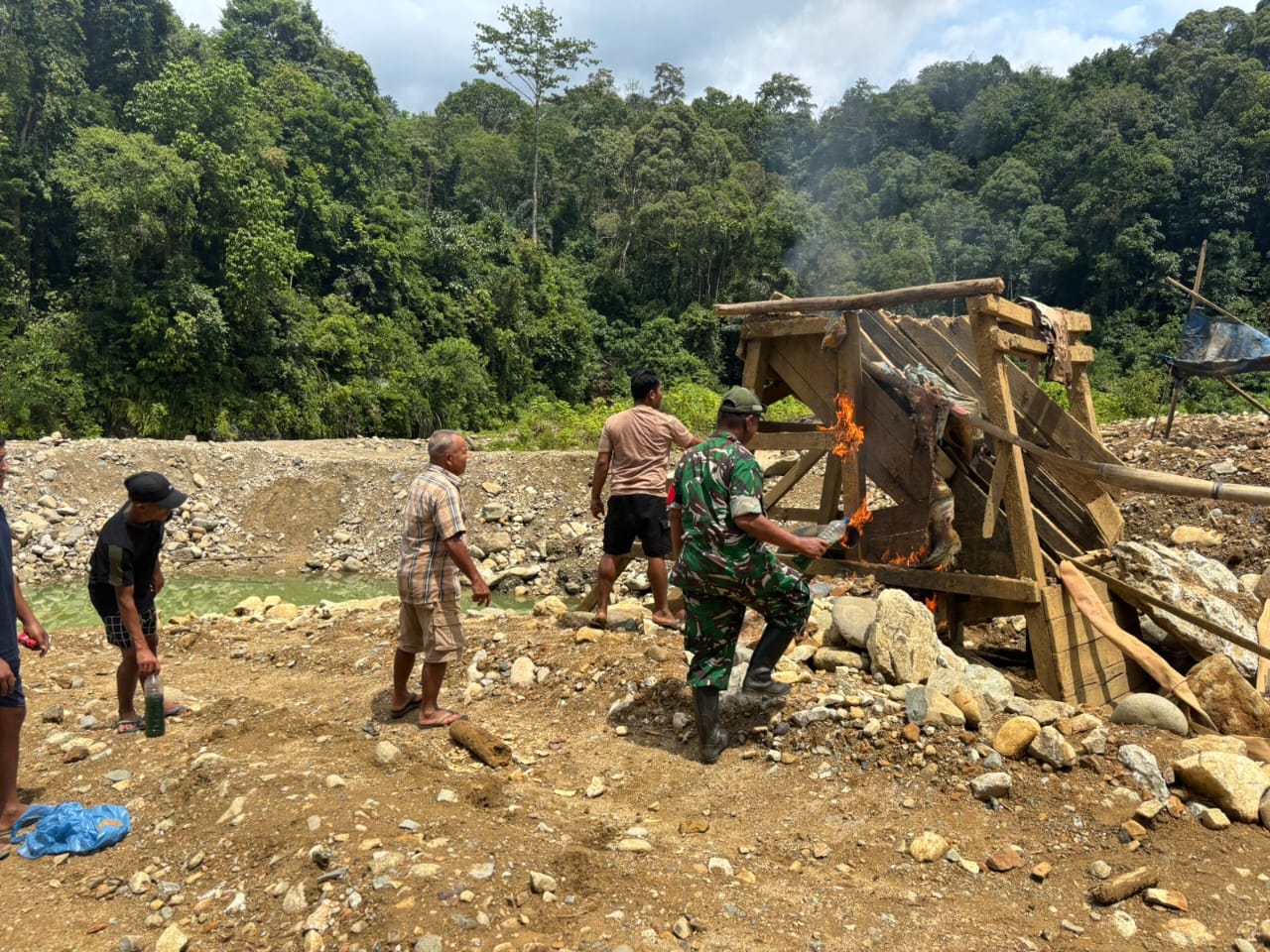 Mandailing Natal , PB – Personel Komando Distrik Militer (Kodim) 0212/Tapanuli Selatan menggencarkan sosialisasi dan penertiban aktivitas Penambangan Emas Tanpa Izin (PETI) di sejumlah titik wilayah Kabupaten Mandailing Natal (Madina), Minggu (2/11/2025).