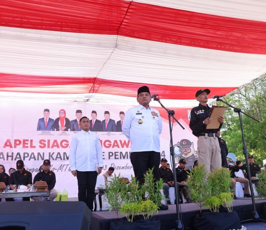 Pj Gubernur Sultra Bertindak Selaku Pembina Apel Siaga Pengawasan Tahapan Kampanye di Kendari, Begini Pesannya