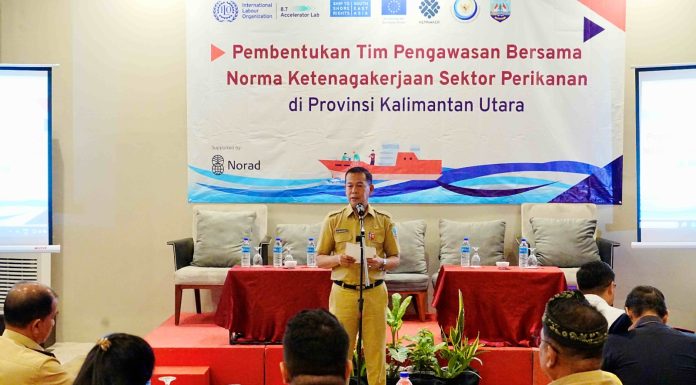 Tanjung Selor, PB- Asisten Bidang Pemerintahan dan Kesejahteraan Rakyat (Kesra), H. Datu Iqro Ramadhan, S.Sos., M.Si., mewakili Gubernur Kalimantan Utara (Kaltara), DR (HC) H. Zainal A. Paliwang, M.Hum, secara resmi membuka kegiatan Pembentukan Tim Pengawasan Bersama Norma Ketenagakerjaan Sektor Perikanan pada hari Selasa (13/8/2024). Acara tersebut diadakan di Hotel Luminor, Tanjung Selor.