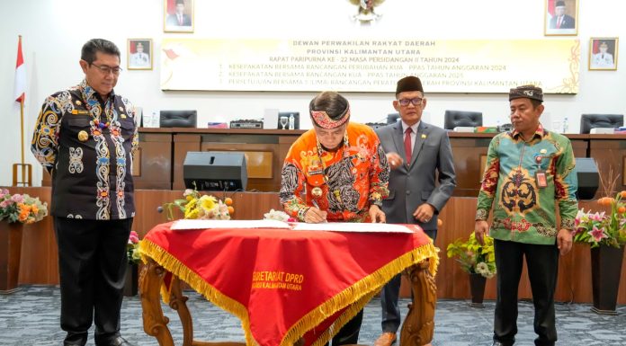 Tanjung Selor, PB- Gubernur Kalimantan Utara (Kaltara), DR (HC) H. Zainal A. Paliwang, M.Hum, didampingi Wakil Gubernur Kaltara, Dr. Yansen TP., M.Si., menghadiri Rapat Paripurna ke-22 Masa Persidangan II Tahun 2024 di kantor Dewan Perwakilan Rakyat Daerah (DPRD) Kaltara pada Kamis (15/8).