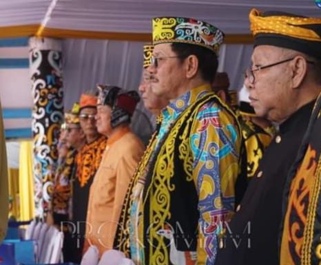 Bupati, Wabup bersama DPRD, Forkopimda serta jajaran pemerintahan daerah mengenakan pakaian adat daerah sebagai...
