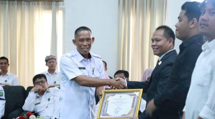BULUNGAN_PB--- Bupati Bulungan Syarwani, S. Pd, M.Si memberikan penghargaan kepada 32 wajib pajak (WP) dan desa teladan pajak di Kabupaten Bulungan tahun 2023 di Gedung BKPSDM Bulungan di Jl Agathis, Tanjung Selor pada Rabu (25/10). Selain piagam penghargaan, para WP dan desa teladan juga diberikan stimulus khusus Pajak Reklame selama 3 bulan pada 2024 di wilayah Kabupaten Bulungan.