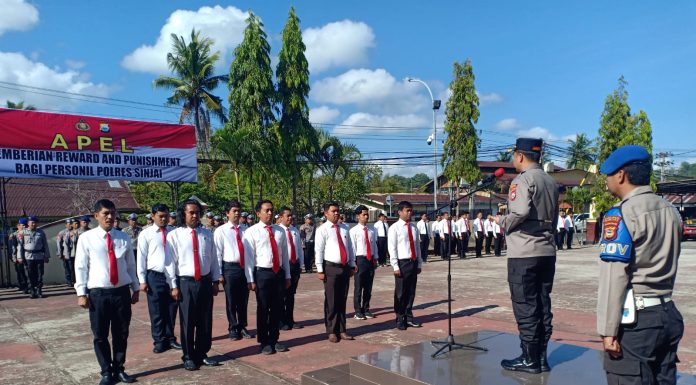 SINJAI_PB--- Kepala Kepolisian Resor Sinjai, Ajun Komisaris Besar Polisi (Akbp) Fery Nur Abdulah, S.Ik pimpin apel pemberian reward kepada 10 personel Sat Reskrim Polres Sinjai yang berprestasi, Bertempat dihalaman Mapolres Sinjai. Senin (2/9/2023) pagi.