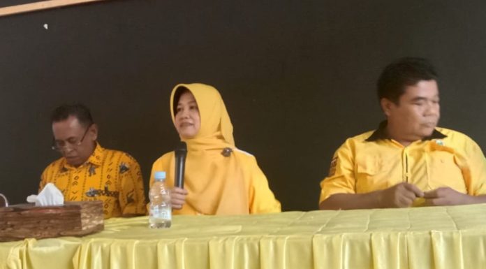 Sinjai_Pedulibangsa- Ketua DPD II Partai Golkar Sinjai, Andi Kartini Ottong memotivasi para Calon Anggota Legislatif Partai Golkar Kabupaten Sinjai agar bersama sama berjuang meraih kemenangan pada Pemilihan Legislatif tahun 2024 mendatang.