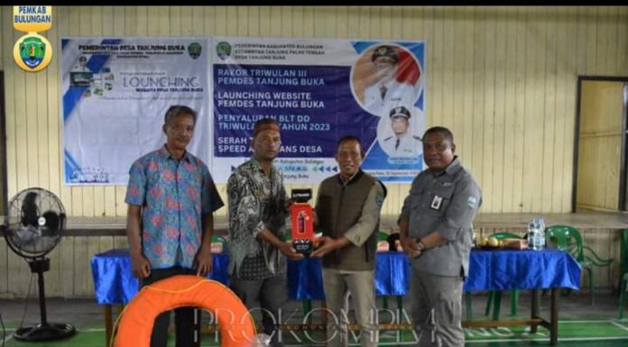 BULUNGAN_PB--- Bupati Bulungan, Syarwani, S.Pd, M.Si menyalurkan Bantuan Langsung Tunai dari Dana Desa (BLT DD) triwulan ketiga total sebesar Rp900 ribu bagi masing-masing Keluarga Penerima Manfaat (KPM) di Desa Tanjung Buka, Kecamatan Tanjung Palas Tengah pada Jumat (15/9). Bupati juga menyerahkan bantuan hibah berupa 1 unit Speedboat Ambulans beserta kelengkapannya untuk membantu warga Tanjung Buka.