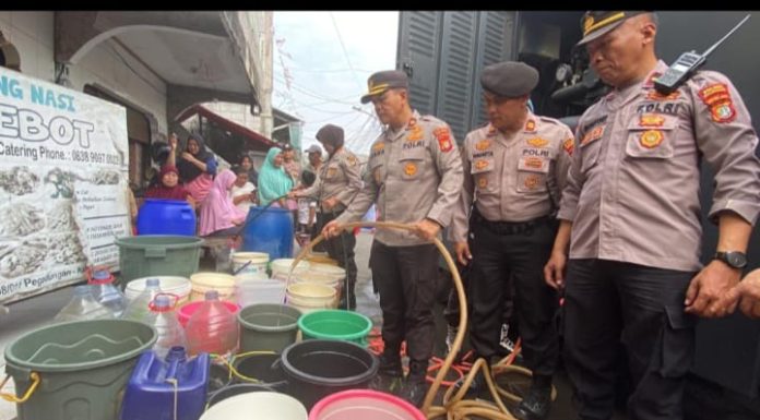 Polres Metro Jakarta Barat Bantu Warga Kalideres yang Kesulitan Air Bersih dengan Kendaraan Mobil Water Canon