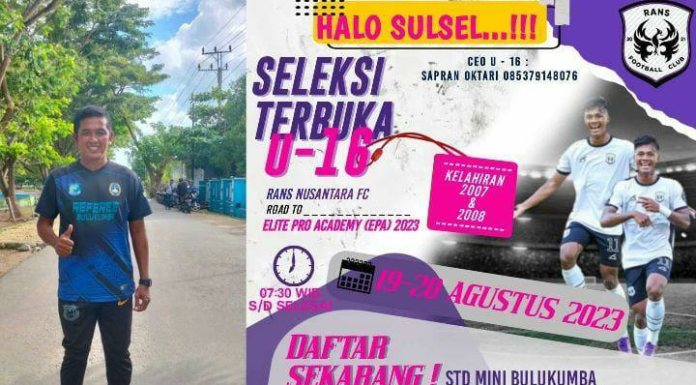 BULUKUMBA_PB--- Rans Nusantara FC adalah salah satu club kontestan BRI liga 1 Indonesia yang saat ini akan mencari pemain muda berbakat di usia 16 Tahun yang ada di kabupaten bulukumba. mengingat saat ini Rans Nusantara FC berada di papan Atas BRI liga 1 Indonesia.
