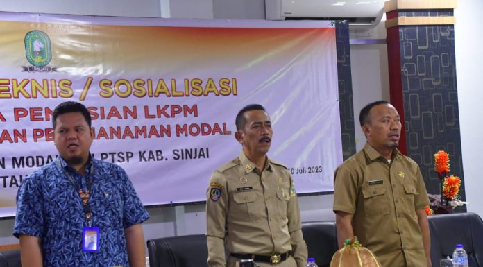 SINJAI_PB--- Pemerintah Kabupaten (Pemkab) Sinjai melalui Dinas Penanaman Modal Pelayanan Terpadu Satu Pintu (DPMPTSP) mengadakan Bimbingan Teknis (Bimtek)/Sosialisasi Tatacara Pengisian Laporan Kegiatan Penanaman Modal (LKPM) di Aula Wisma Hawai, Senin (10/7/2023)