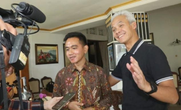 SEMARANG _PB---Wali Kota Surakarta, Gibran Rakabuming Raka menemui Gubernur Jawa Tengah Ganjar Pranowo, di Puri Gedeh, Semarang, Senin (3/4) siang. Senyum dan tawa menghiasi pertemuan selama satu jam.