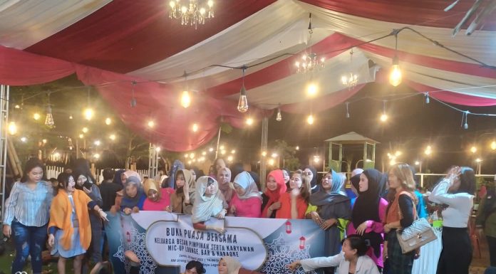 SEMARANG_PB--- Menyemarakkan bulan suci Ramadan 1444 H, Segenap Pimpinan dan Karyawan Mic-up Karaoke, Bar & Lounge, Ruko Bolsena D 9-11, Gading Serpong, Curug Sangereng, Kec. Klp. Dua, Kabupaten Tangerang, Banten, menggelar buka puasa bersama di rumah makan Urang Sunda HJJ Legok, pada Senin (03/04/2023).