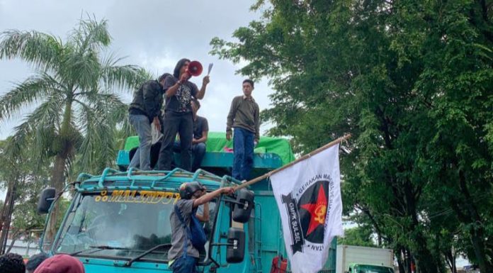 Aksi yang dihadiri oleh puluhan Masa Dari Gerakan mahasiswa pejuang Kerakyatan (GMPK) Sulsel dengan menjadikan mobil truk sebagai panggung orasi membawa tuntutan adalah mendesak Kapolda Sulsel untuk mengusut tuntas mafia BBM di Sulsel .