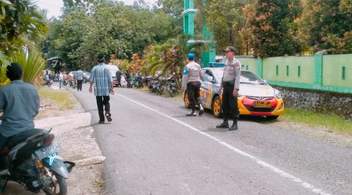 SINJAI_PB--- Polsek Sinjai Tengah melaksanakan kegiatan pengamanan dan pengaturan lalu lintas kepada warga yang sedang berduka karena kehilangan salah satu anggota keluarganya diDusun Salohe Desa Kanrung Kecamatan Sinjai Tengah Kab Sinjai, Selasa (20/12/2022). Siang.