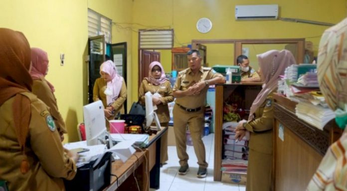BULUKUMBA_PB--- Bupati Bulukumba Muchtar Ali Yusuf melaksanakan inspeksi ke sejumlah instansi di hari pertama berkantor pascalibur Lebaran, Senin (9/5/2022). Di sejumlah OPD ditemukan banyak ASN mangkir.